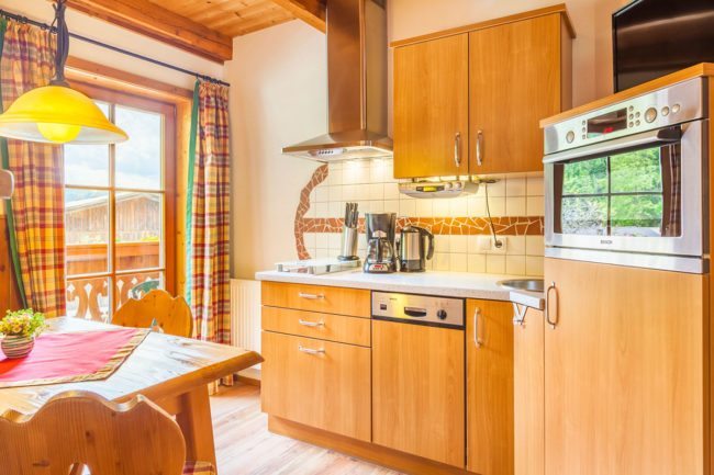 Gemütlich und heimelig präsentiert sich die Ferienwohnung “Linde” am Erbhof Hacklbauer mit zwei getrennten Schlafzimmern, einer komplett eingerichteten Küche, der separaten Dusche mit WC und Balkon. Die eigene Wärmekabine wird besonders gerne an kalten Tagen genutzt.